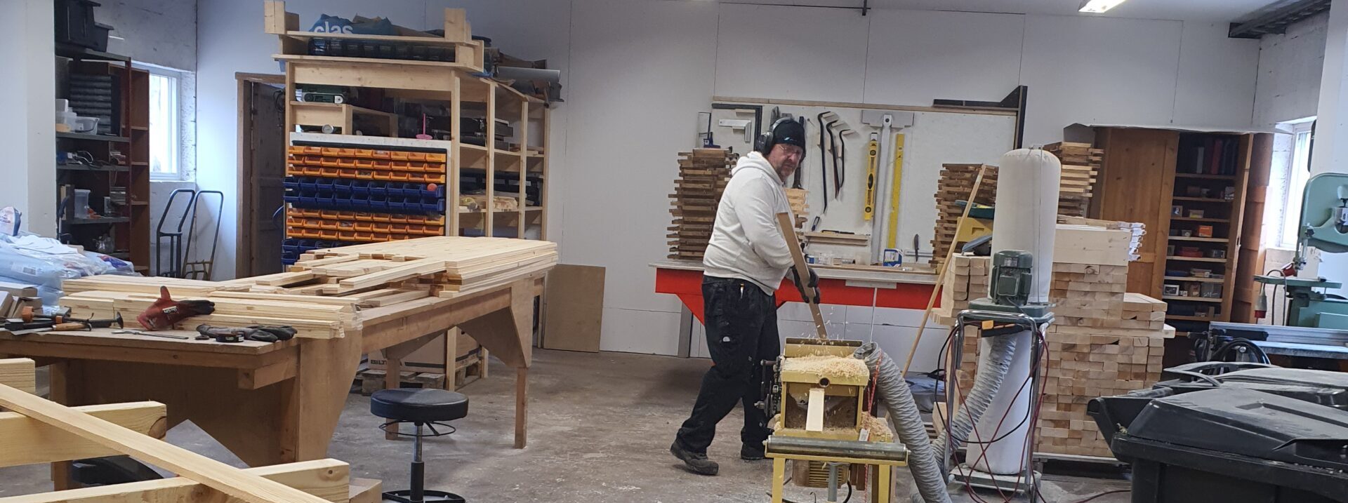 I vår verkstad i Småland tillverkar vi ramfodrare och bygger egna träkupor – med fokus på funktion, hållbarhet och respekt för bina.